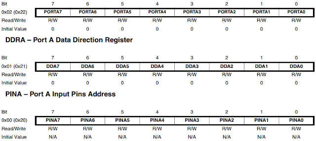 - DDR, PORT : 읽기/쓰기 가능, PIN : 읽기만 가능